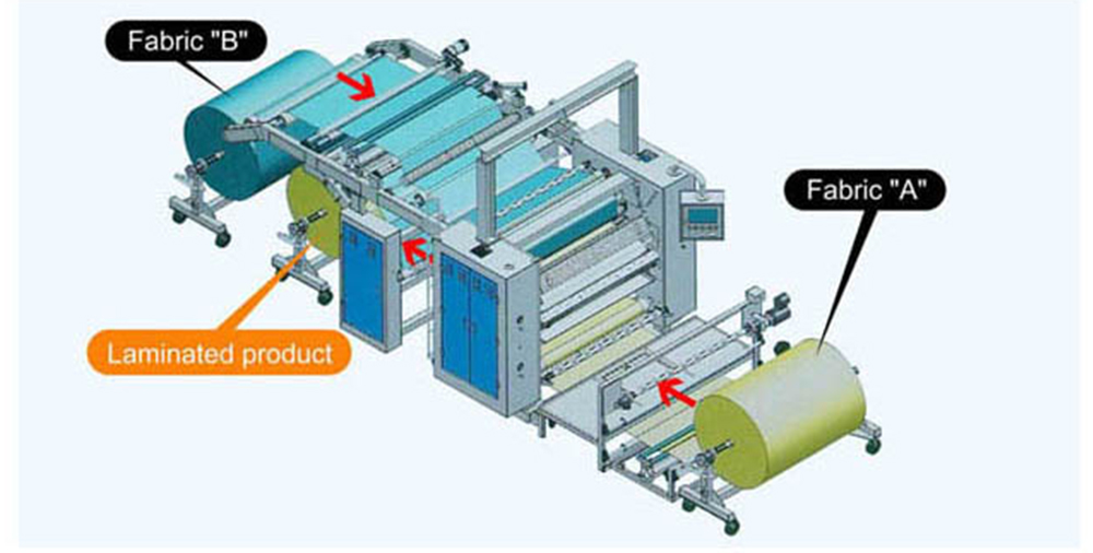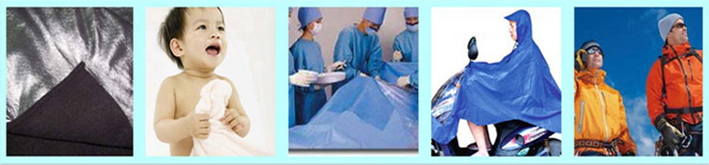 It can be used for laminating 99.9% of textiles, such as fabric + fabric, fabric + film, etc. It is widely used in clothing industry, automobile manufacturing industry, medical industry and environmental protection industry.